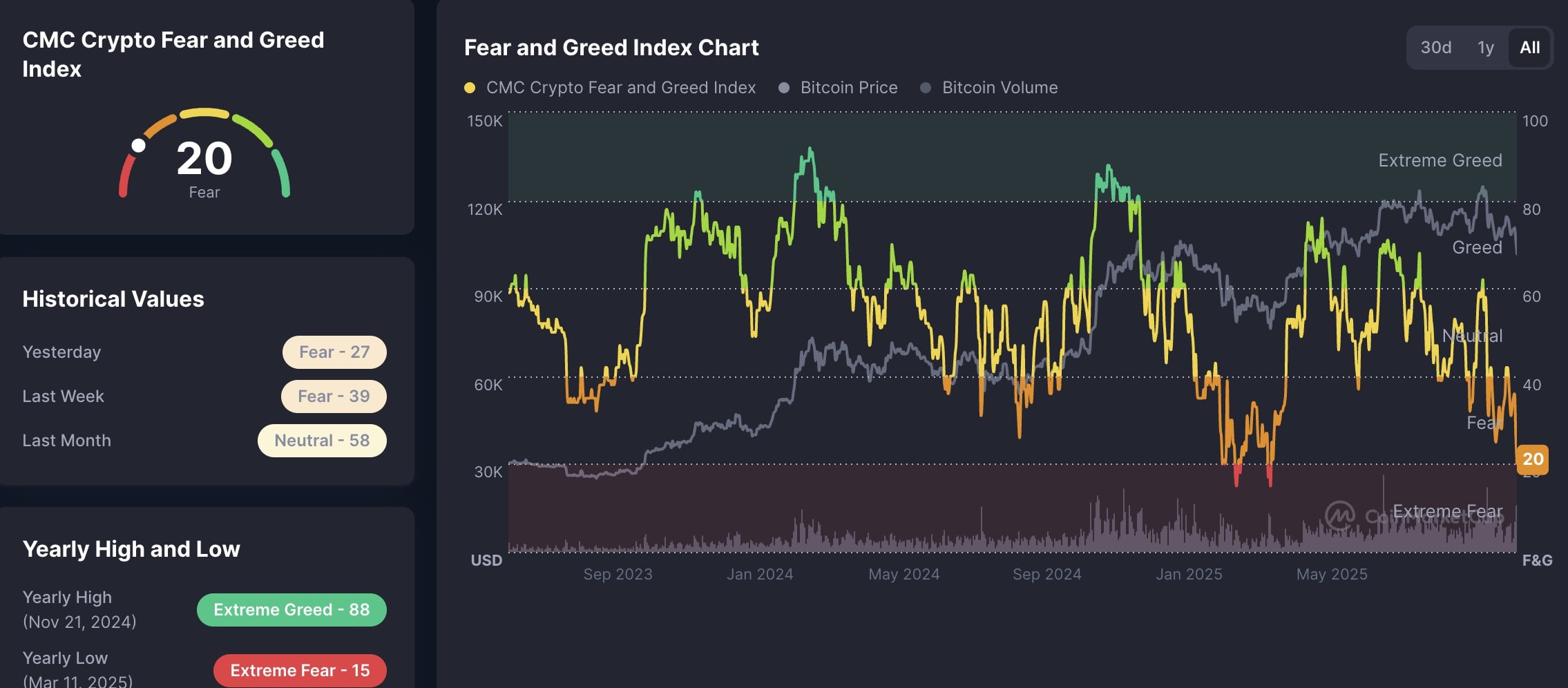 Fear and Greed Index značící sentiment na kryptoměnovém trhu