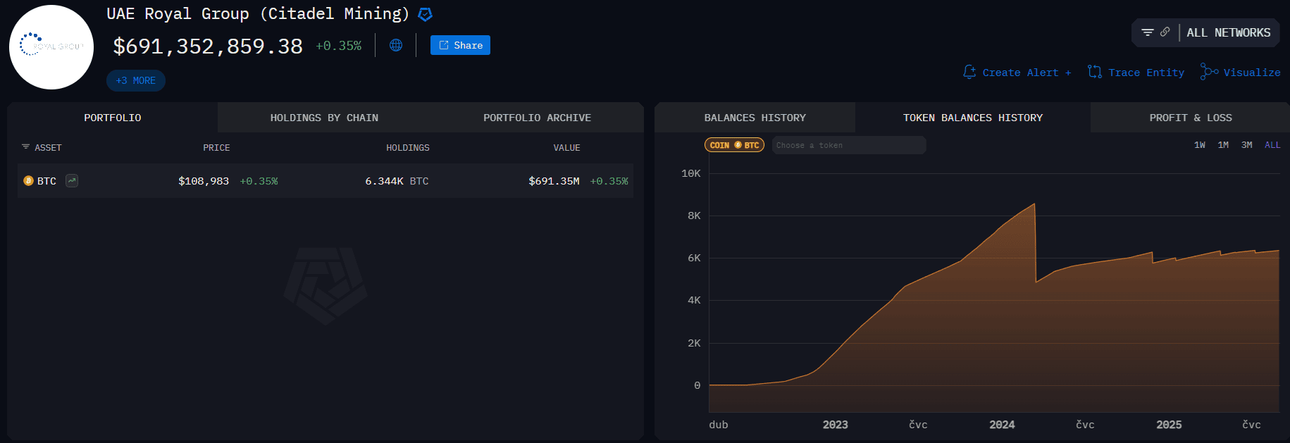 Minulý týden analytická společnost Arkham Intelligence jako první odhalila, že Spojené arabské emiráty (UAE) drží přibližně 6 300 BTC, což představuje přibližně 700 milionů dolarů (14,7 mld Kč).