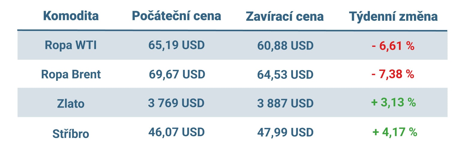 Vývoj ceny nejvýznamnějších komodit v tomto týdnu