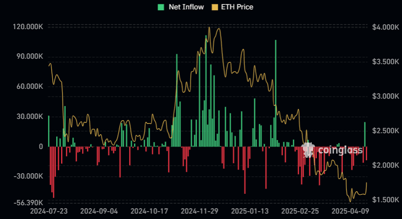 Tato druhá největší kryptoměna dle tržní kapitalizace v úterý posílila o 11 %, tudíž lze vidět jistou korelaci mezi vývojem ceny a přílivem kapitálu i do jeho fondů.