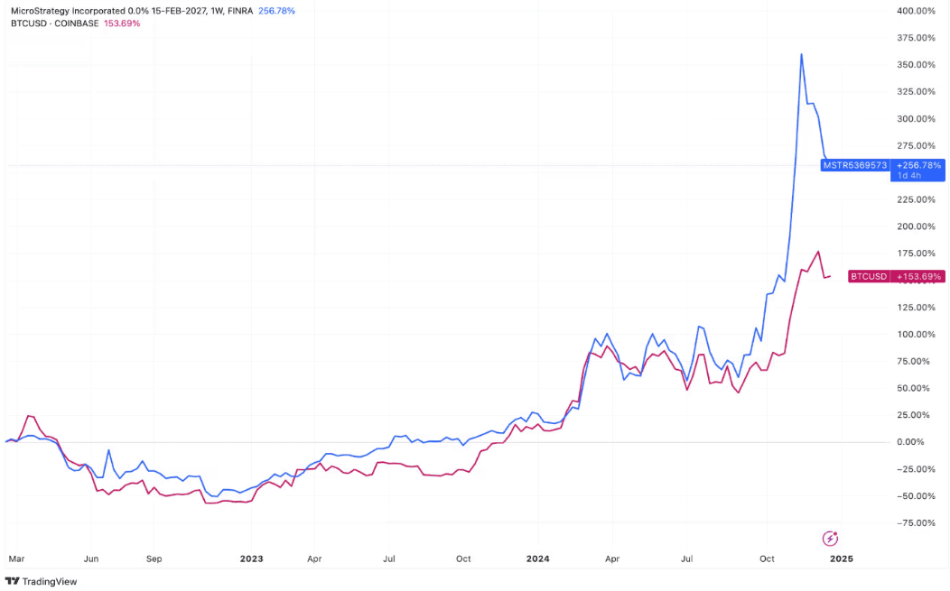 Výkonnost dluhopisů MicroStrategy v porovnání s bitcoinem