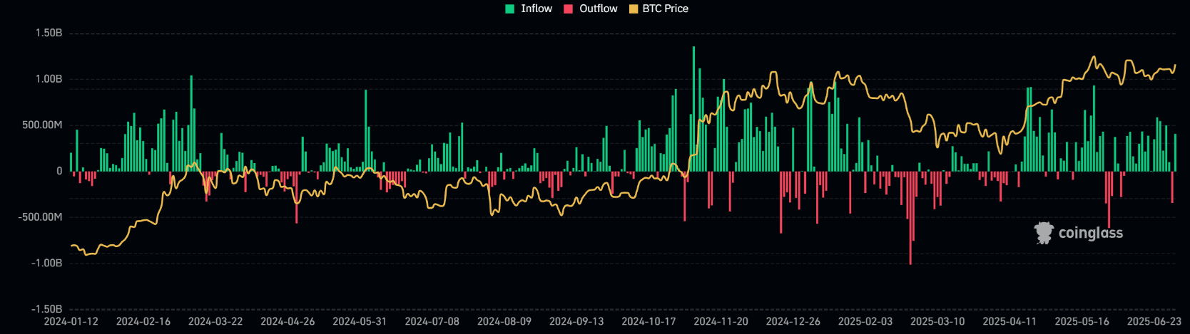 Vývoj peněžních toků v rámci Bitcoin ETF