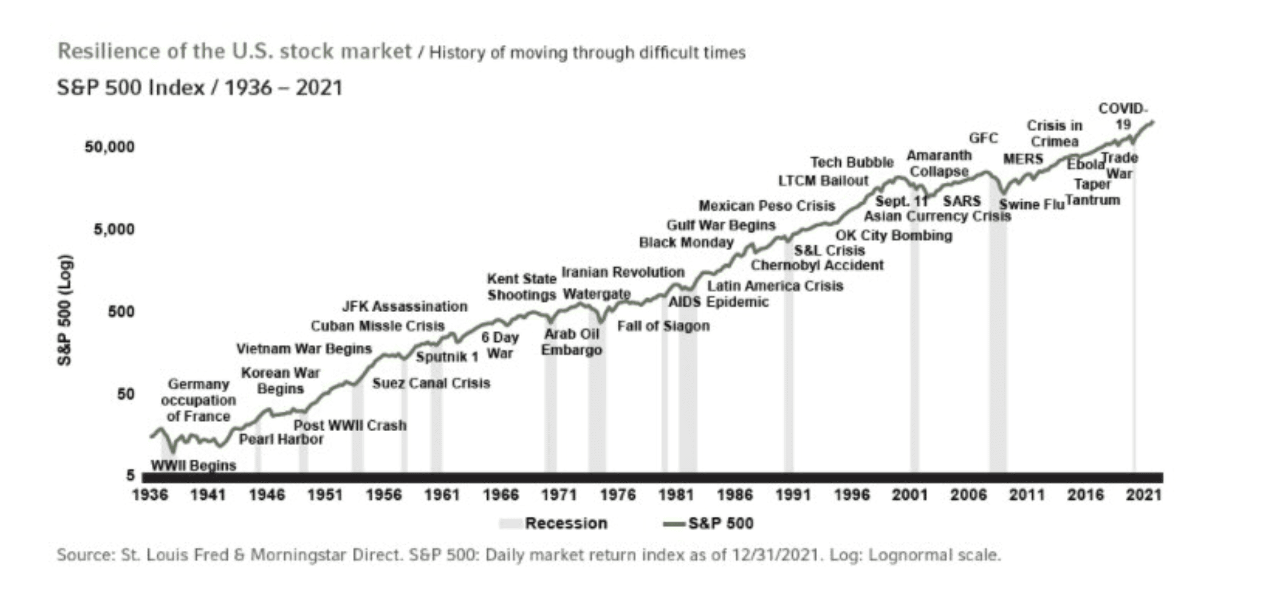 Nepříznivé historické události, které měly vliv na vývoj indexu S&P 500.