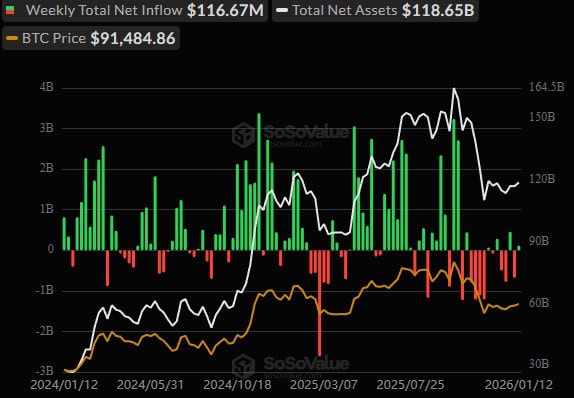 V roce 2025 přiteklo do amerických ETF téměř 22 miliard dolarů a tento kapitál se stává stabilním základem trhu. Pokud firmy a fondy nepoleví v agresivním plnění svých rozvah, BTC se po svém zotavení může rychle podívat nad 120 tisíc dolarů.