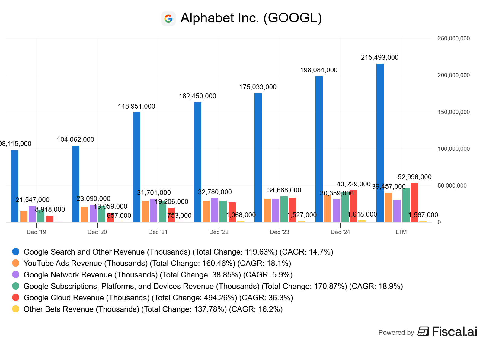 Tím je vyhledávač Google, který se na tržbách firmy podílí z více než 50 %. Alphabet ho vylepšil o AI funkce a přidal přehledy do vyhledávání, které zvýšily engagement uživatelů a množství hledaných dotazů.