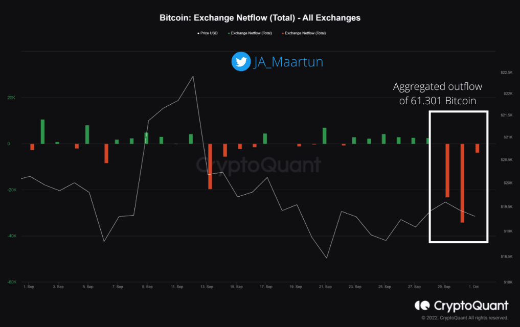 Jak upozornila ve svém příspěvku analytická společnosti CryptoQuant, investoři v poslední době stáhli z burz více než 60 tisíc BTC.