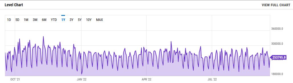 Bitcoinová síť v současné době zpracovává přibližně 250 000 transakcí denně a počet aktivních adres se pohybuje denně kolem 1 000 000 adres.