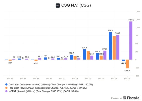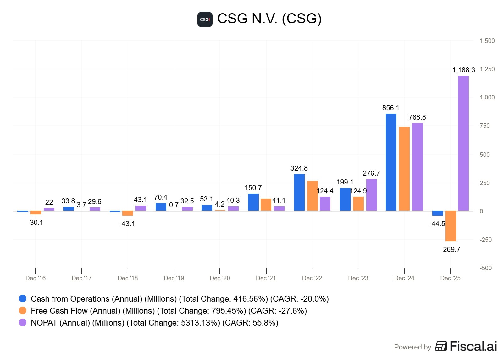 Zatímco papírový účetní zisk CSG prudce roste, její reálná schopnost generovat hotovost se povážlivě zhoršuje.