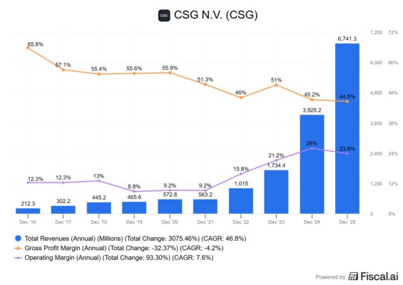 CSG vyrostla z 1 miliardy na téměř 7 miliard EUR tržeb a stoupá i provozní marže. Akcie ale přesto padá. Jaká jsou rizika této investiční příležitosti?