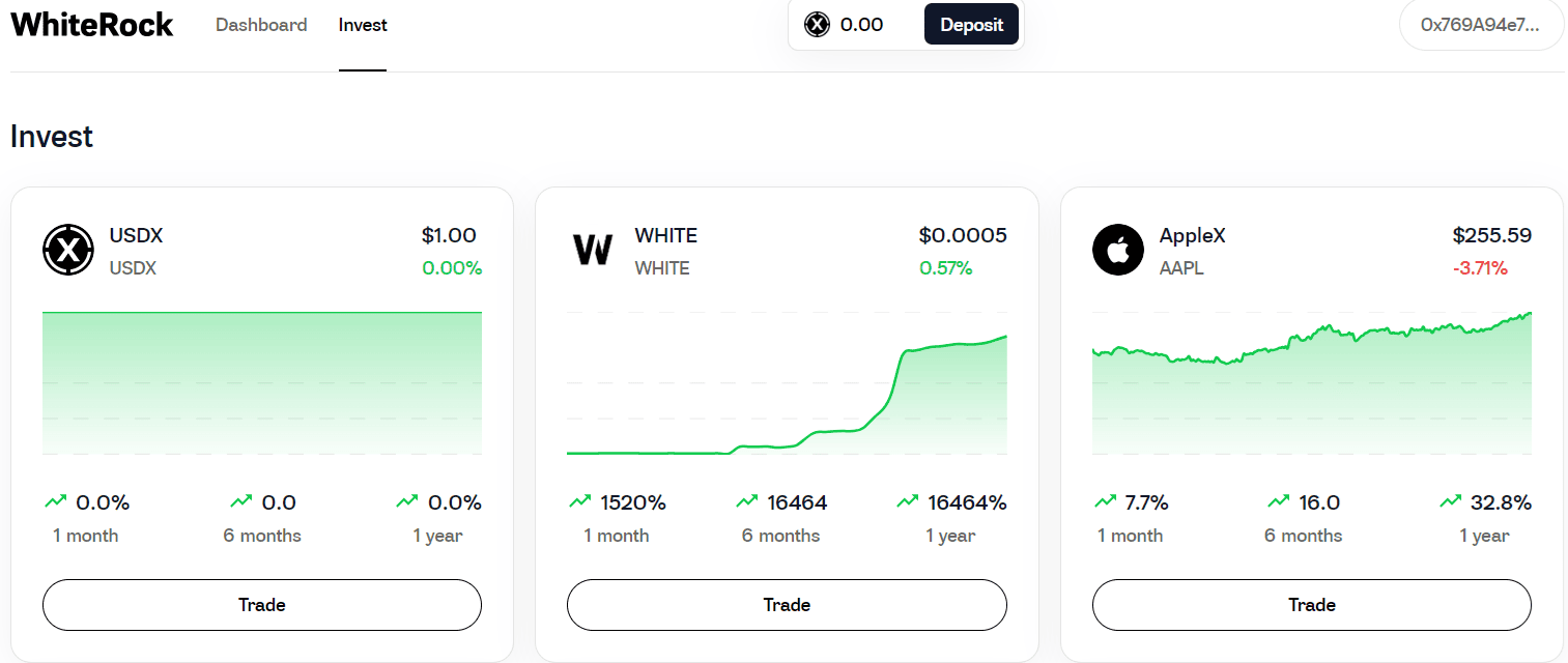 Společnost WhiteRock Finance spustila DeFi platformu pro tokenizaci aktiv v reálném světě, kam se řadí akcie, dluhopisy nebo nemovitosti. Součástí je také podpora tokenizovaného obchodování s aktivy na NYSE, Nasdaqu nebo LSE.