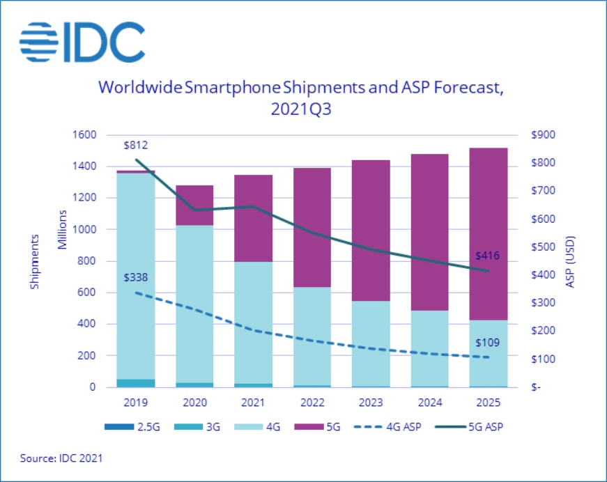 Prognóza růstu trhu se smartphony a růst podílů 5G telefonů