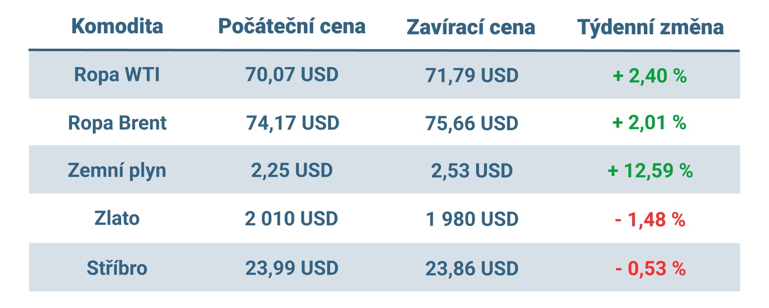 Vývoj ceny nejvýznamnějších komodit v minulém týdnu