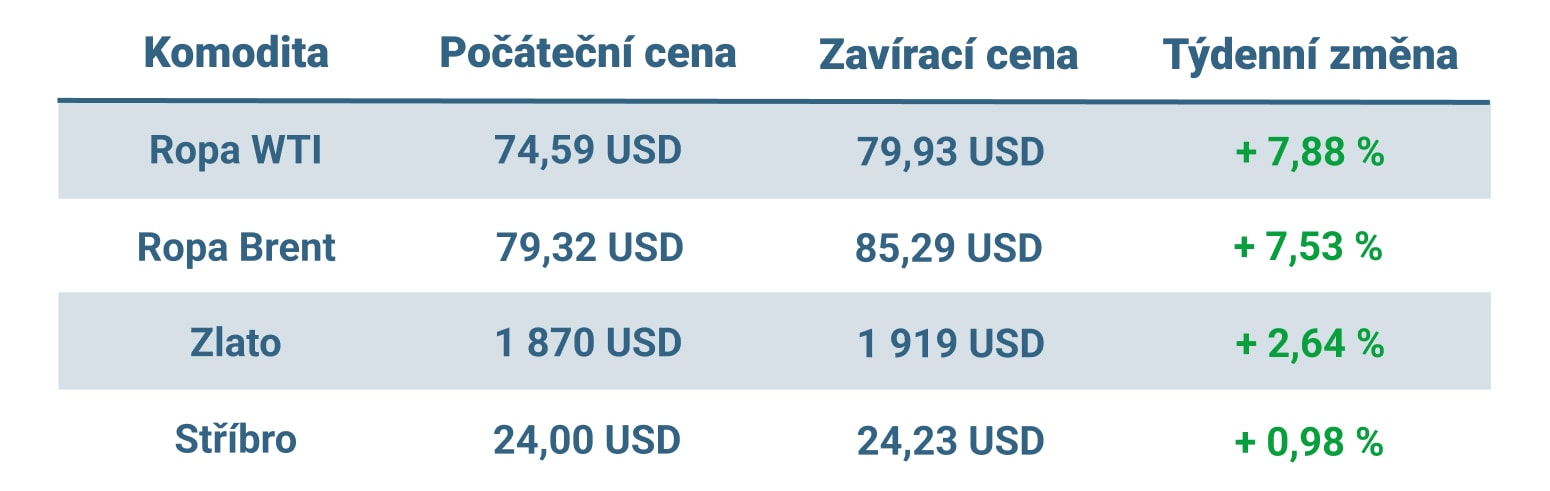 Vývoj ceny nejvýznamnějších komodit v minulém týdnu