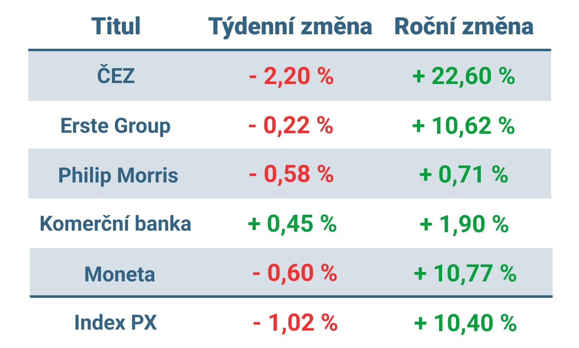 Z dalších významných titulů skončily v záporu i akcie Erste Group, Philip Morris a Moneta – všechny do 1 %. V mírném zisku pak skončily akcie Komerční banky.
