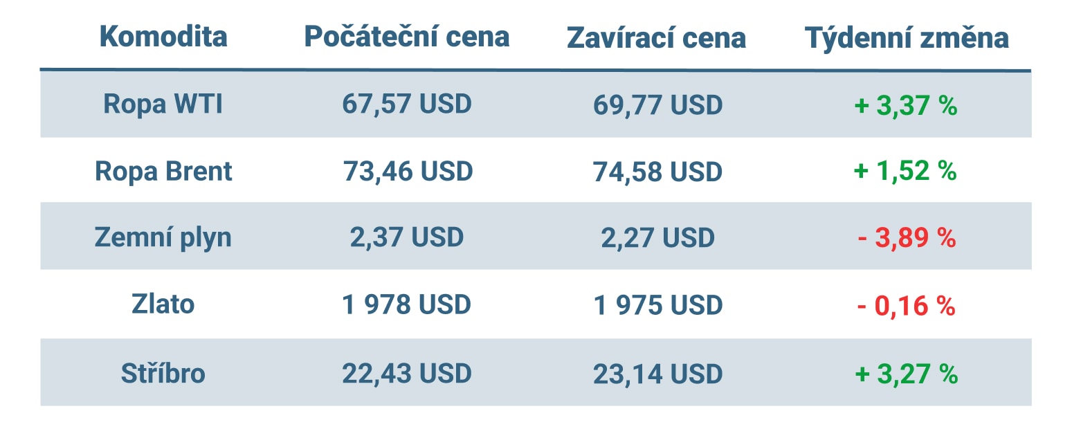 Vývoj ceny nejvýznamnějších komodit v minulém týdnu