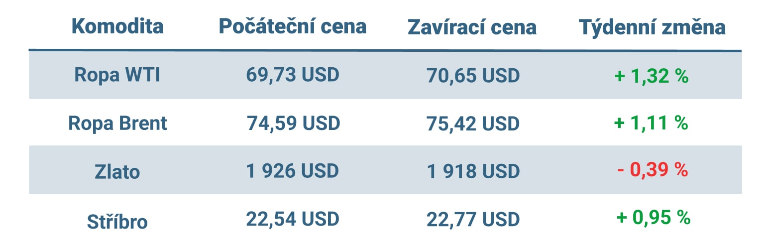Vývoj ceny nejvýznamnějších komodit v tomto týdnu