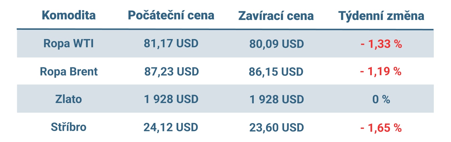 Vývoj ceny nejvýznamnějších komodit v minulém týdnu