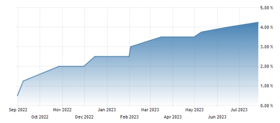 Klesající očekávání dalšího zvyšování sazeb v roce 2023