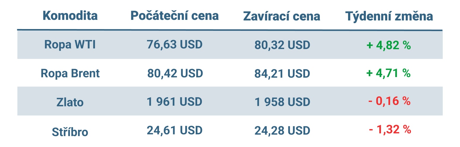 Vývoj ceny nejvýznamnějších komodit v tomto týdnu