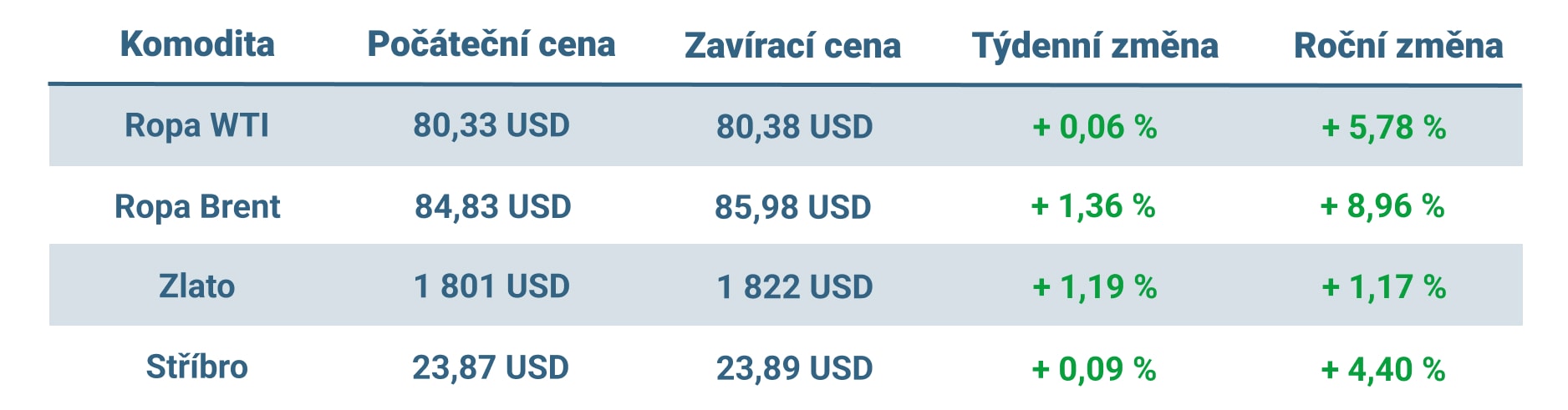 Vývoj ceny nejvýznamnějších komodit v minulém týdnu a v roce 2022