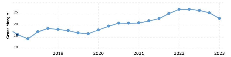 Od prvního čtvrtletí roku 2022 klesly hrubé ziskové marže společnosti Tesla z 27 % na 18 %, což je již třetí čtvrtletí poklesu v řadě, který je stále více znepokojující.