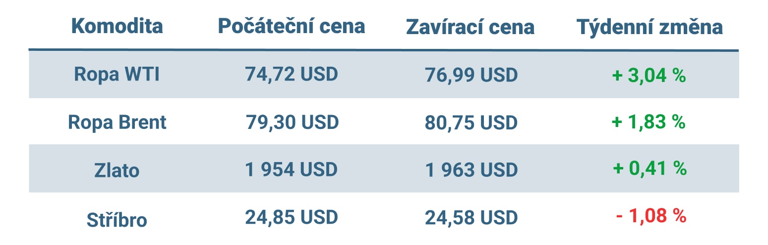 Vývoj ceny nejvýznamnějších komodit v tomto týdnu