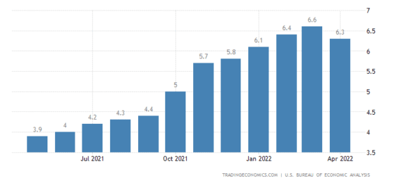 To je druhý pozitivní aspekt plynoucí ze zápisu. Inflace tak umožní jistou čitelnost rozhodnutí Fedu. Pokud inflace začne klesat, Fed nebude muset upravovat svou monetární politiku. To se může stát již brzy. Indikátor PCE naznačil, že inflace se v USA zpomaluje. Meziroční inflace podle této metodiky byla 6,3 % v dubnu 2022 oproti 6,6 % v březnu 2022. Tato metrika inflace je považována Fedem za nejpřesnější.