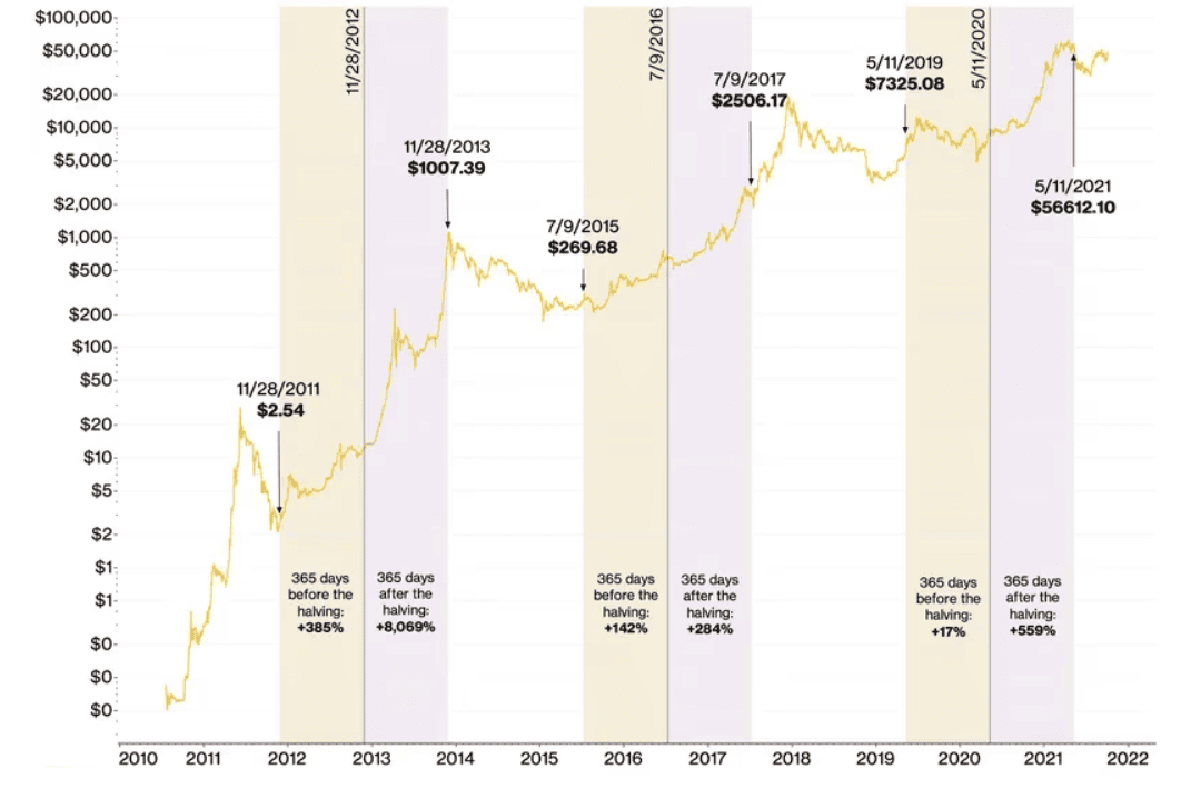 Zajímavé je, že Bitcoin zaznamenal nárůst ceny před i po půlení. V roce 2012 vzrostla jeho cena o 365 % před půlením a o 8 000 % v roce následujícím.