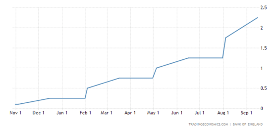 Anglická centrální banka začala společně s Fedem utahovat měnovou politiku dříve než například ECB. Tím pádem by Velká Británie mohla mít jistý náskok před Evropou. To však nepozorujeme. Zaostávání bylo patrné hlavně v posledních týdnech. První hřebíčkem do britské ekonomické rakve, bylo zvýšení úrokových sazeb o 50 bazických bodů. Trhy přitom očekávaly zvýšení minimálně o 75 bodů, a vzhledem k problémům britské ekonomiky by i růst o 100 bazických bodů byl přijat dobře.