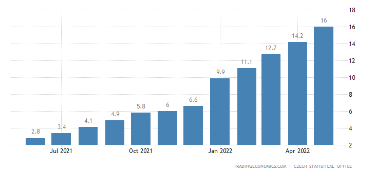 Rusko vedoucí válku má inflaci 17,1 %, tedy jen o něco málo víc než je u nás. Česká inflace dosáhla hrozivých 16 %. A to není všechno. Stačí si uvědomit, že například naše země začala zvedat sazby již před delší dobou a dnes máme sazby na úrovni 5,75 % i vysokou inflaci. Pořád totiž platí, že při inflaci 16 % a sazbách 5,75 % jsou reálné úrokové sazby záporné, konkrétně 10,25 %.