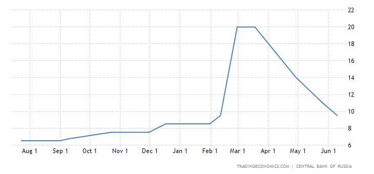 Vývoj ruský úrokových sazeb za poslední rok