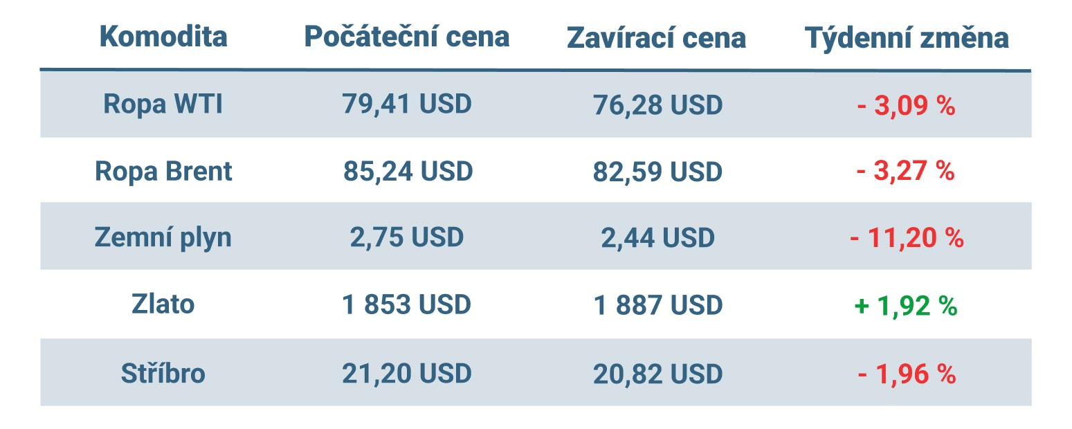 Vývoj ceny nejvýznamnějších komodit v minulém týdnu