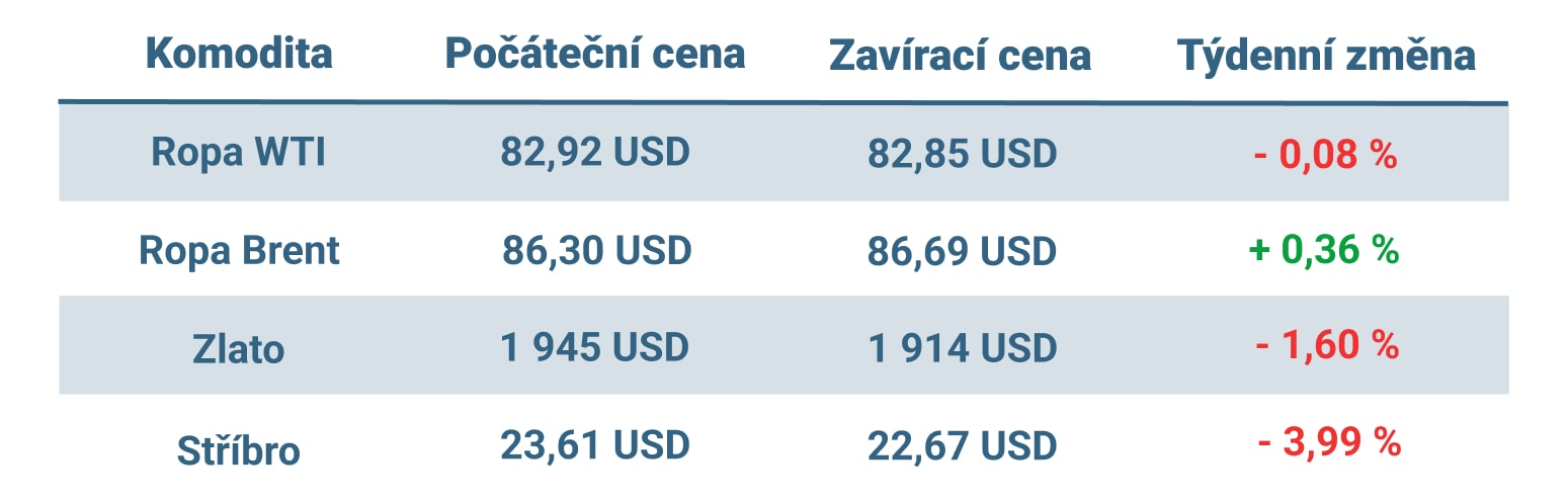 Vývoj ceny nejvýznamnějších komodit v tomto týdnu