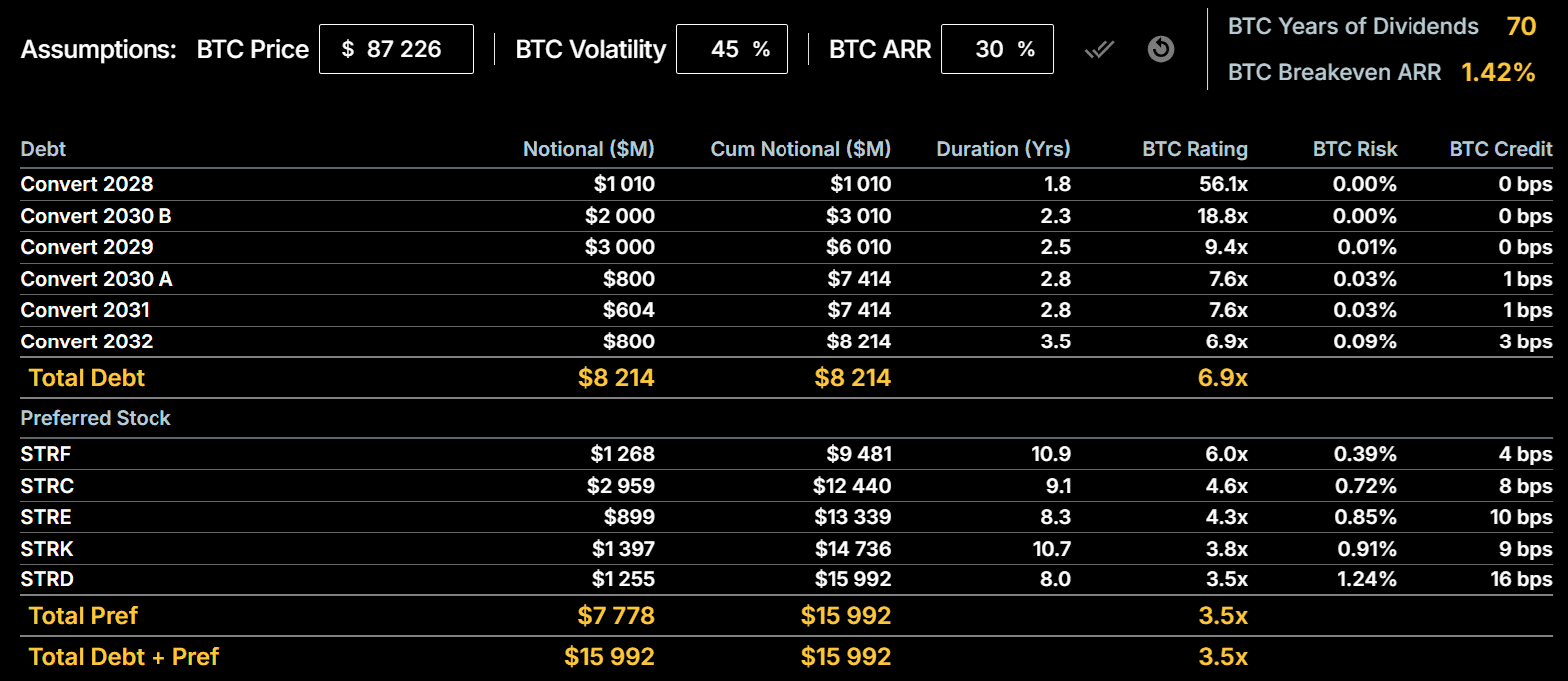 Tvrdí, že zůstane solventní i v případě propadu ceny Bitcoinu pod 74 000 dolarů, což je průměrná nákupní cena všech bitcoinů držených společností. Dluh je prý zvládnutelný i tehdy, kdy cena kryptoměny klesne na 25 000 dolarů.