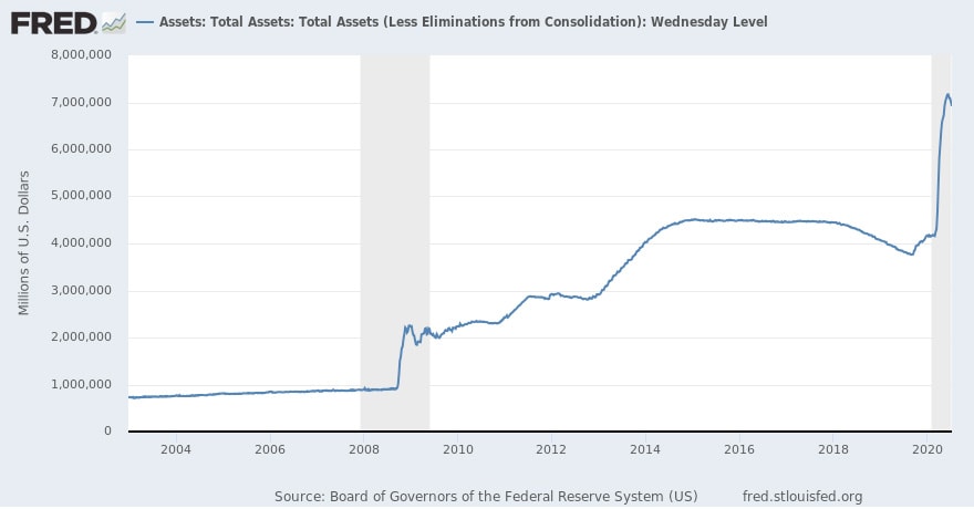 Již nějakou dobu existuje mezi ekonomy konsenzus, že zdravá inflace se pohybuje mírně pod 2% p.a. Tato hodnota je relativně lehce dosáhnutelná za normálních okolností a rozpočtů, což jsou ovšem dvě věci, které se o aktuální situaci opravdu říct nedají. Jedním z důvodů pro obavy je například účetní rozvaha Federálního rezervního systému, jež přesáhla 7 bilionů (!) dolarů.