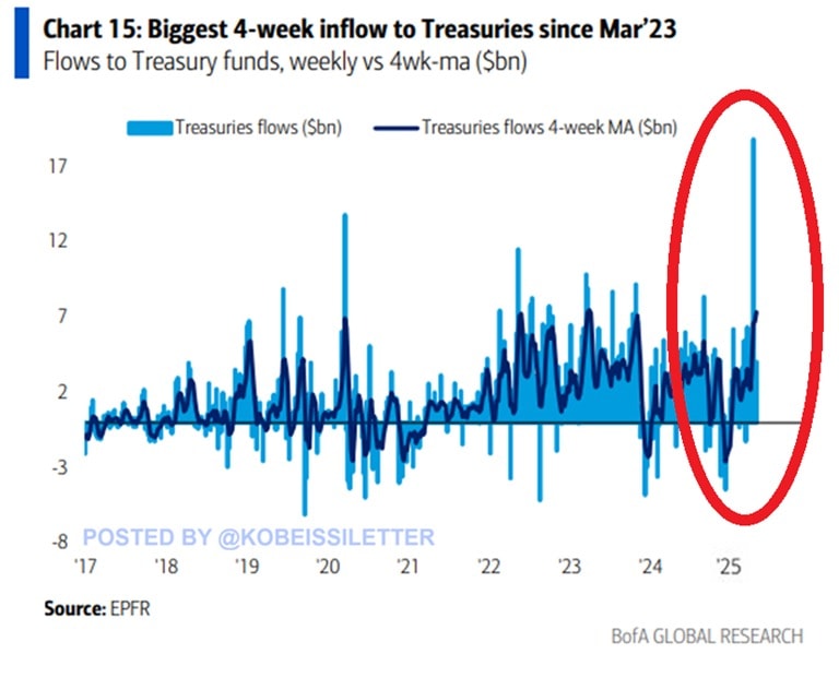 Po bouřlivém vývoji na finančních trzích zaznamenaly americké státní cenné papíry značný příliv kapitálu, přičemž minulý týden do nich investoři zainvestovali přes 19 miliard dolarů.