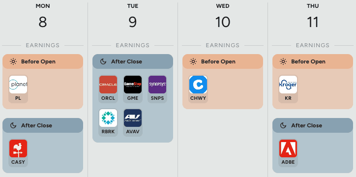 Co se týče výsledků hospodaření, nečeká nás žádná divočina. Data bude krom jiných v úterý zveřejňovat Oracle a GameStop. Za zmínku pak stojí ještě čtvrteční výsledková zpráva společnosti Adobe.