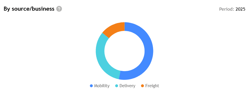 Příjmy Uberu podle zdrojů za rok 2025.