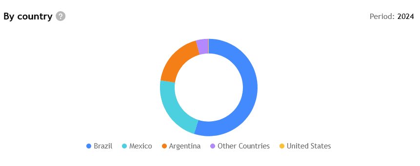 Příjmy MercadoLibre za rok 2024 podle zemí.