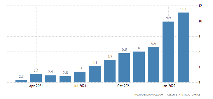 Česká národní banka dlouho proklamovala, že strop základní úrokové sazby bude 5 %. Že tuto linii nepřekročí. Jakmile však centrální banka v únoru zveřejnila ty nové makroekonomické prognózy, začal jsem si myslet, že svá původní slova nemohou dodržet. Pak přišla válka na východě. To bylo jakési potvrzení, že strop na 5 % je nereálný. ČNB dokonce musela intervenovat na devizovém trhu, čímž potvrdila vážnost situace. Člen bankovní rady Tomáš Holub před pár dny již přiznal, že těch 5 % velmi pravděpodobně nelze za strop považovat.