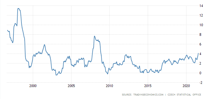 Meziroční inflace je momentálně v tuzemsku rekordní. Dle posledních naměřených dat 4,1 %. To je hodně vysoko nad inflačním cílováním (2 %).