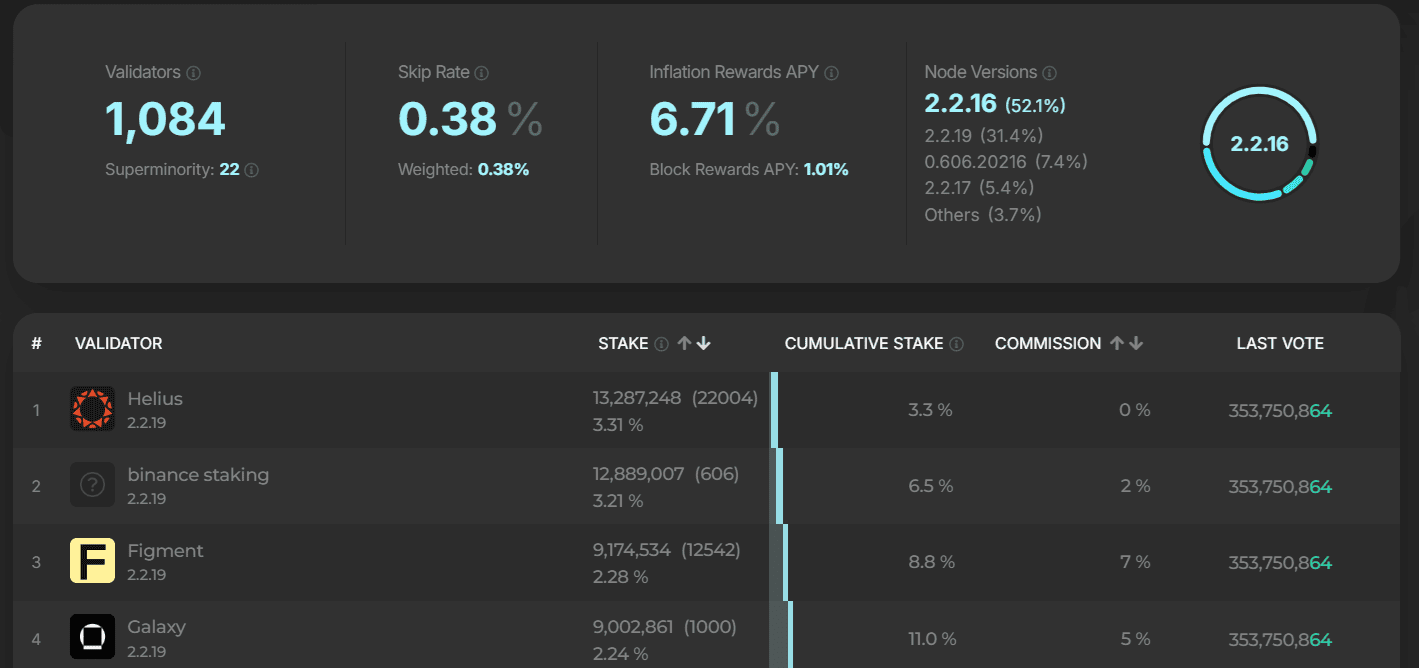 Početní omezení na aktivní validátory vychází buď ze samotného návrhu sítě (BNB Chain) a nebo z velmi náročných požadavků na provozování validátorských uzlů (Solana).