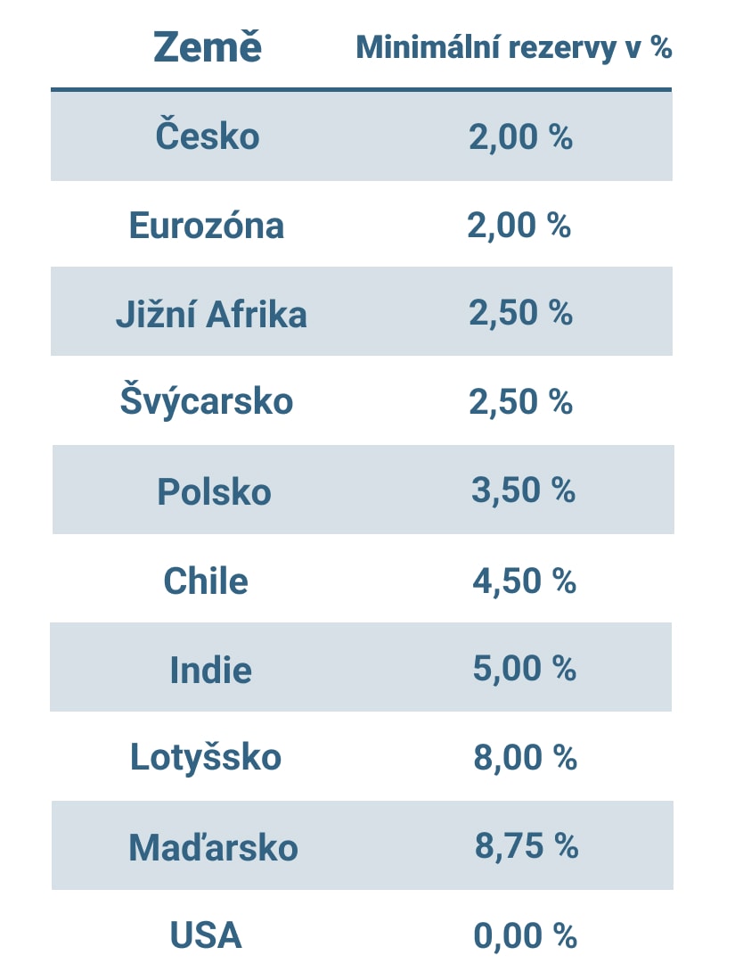 Minimální rezervní požadavky (povinné minimální rezervy) stanovují centrální banky, které komerčním bankám nařizují udržovat určitou část svých vkladů ve formě hotovosti nebo vkladů u centrální banky. Tento požadavek pomáhá zajistit, že banky budou mít dostatek likvidity na to, aby uspokojily běžné požadavky svých klientů na výběr hotovosti.