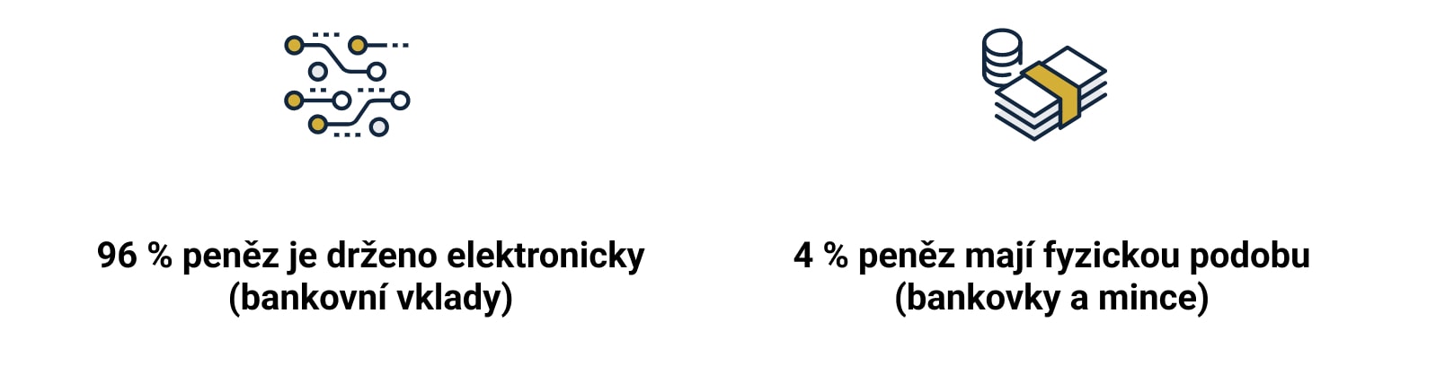 Dnes jsou peníze kryté pouze důvěrou ve stát a jeho centrální banku. Peníze jsou tedy většinově pouze záznamem v elektronických systémech bank, které reflektují naše finanční závazky a nároky.