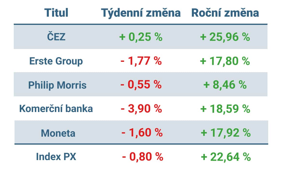 Pražská burza za sebou má další zajímavý týden, na jehož konci ovšem mírně oslabila.