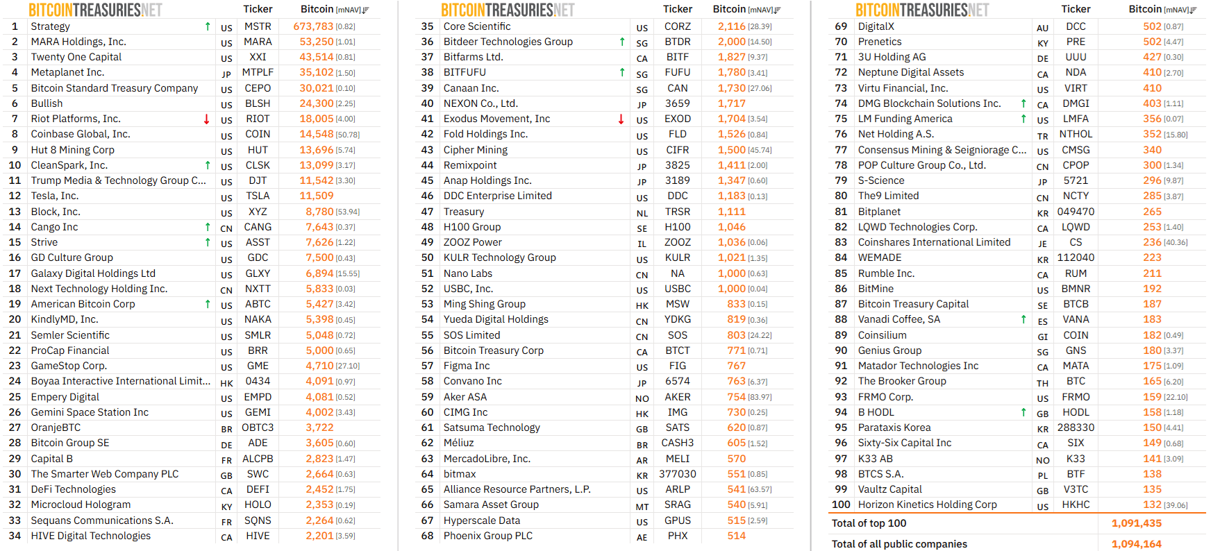 Vliv treasury firem již není malý, přičemž dohromady vlastní všechny veřejně obchodované firmy 1,09 milionu bitcoinů, což při aktuálních cenách odpovídá částce 100 miliard dolarů.