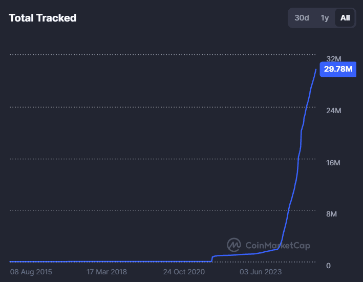 Jednotlivých tokenů neustále přibývá, přičemž podle dat CoinMarketCap existuje přibližně 30 milionů tokenů.