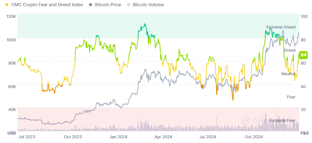 Od nejnižší cenové úrovně z pondělí, 89 000 dolarů, tak Bitcoin během týdne přidal přes 16 %, což se odrazilo i na kryptoměnovém Fear and Greed indexu měřící náladu na trhu, který se po minulém týdnu opět přehoupl do oblasti greed.