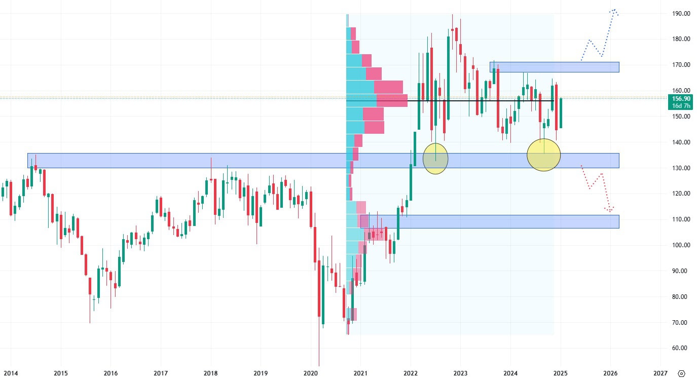 Naopak akciím by prospěl průraz nad hodnotu nejbližší rezistence, tedy nad 170 USD. V takovém případě by akcie již neměly nad sebou žádnou zásadní rezistenci, pouze své cenové maximum.