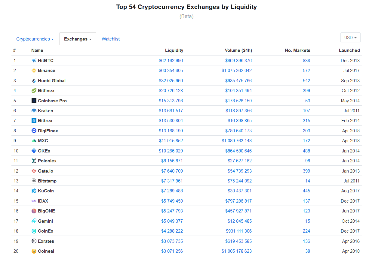 Nové hodnocení burz je již dostupné na webových stránkách CoinMarketCap, představeno bylo minulý týden. Metrika podle likvidity (Liquidity) je reakcí na četná obvinění, podle kterých objem obchodů (Volume), dosud nejpoužívanější nástroj srovnávání burz, se stal náchylným na podvody a manipulace s údaji o zobchodovaných penězích.